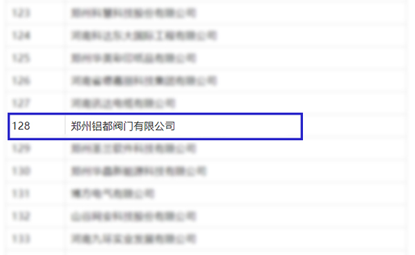 鄭州鋁都閥門有限公司登榜省級“專精特新”中小企業名單。